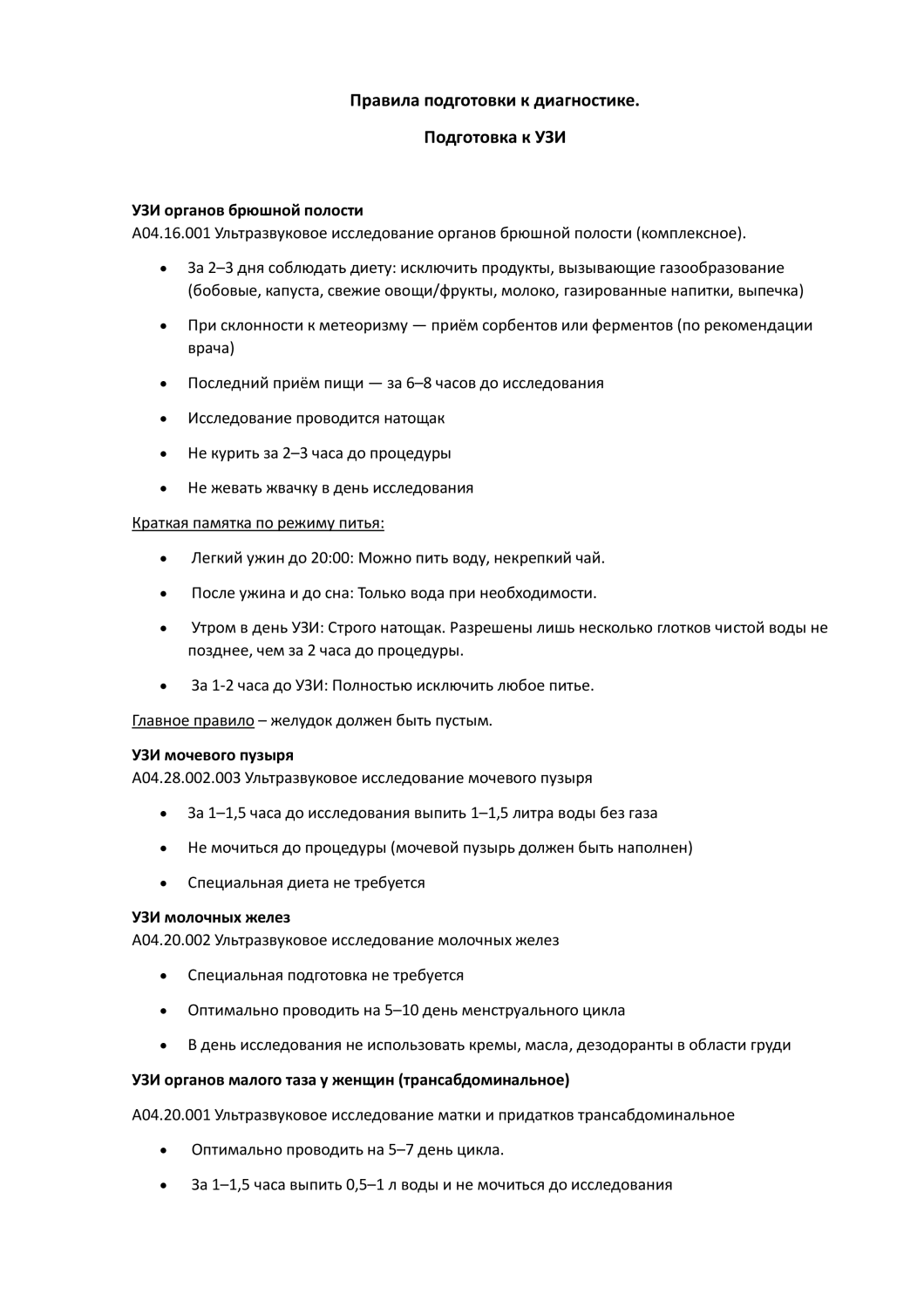 Правила подготовки к диагностике