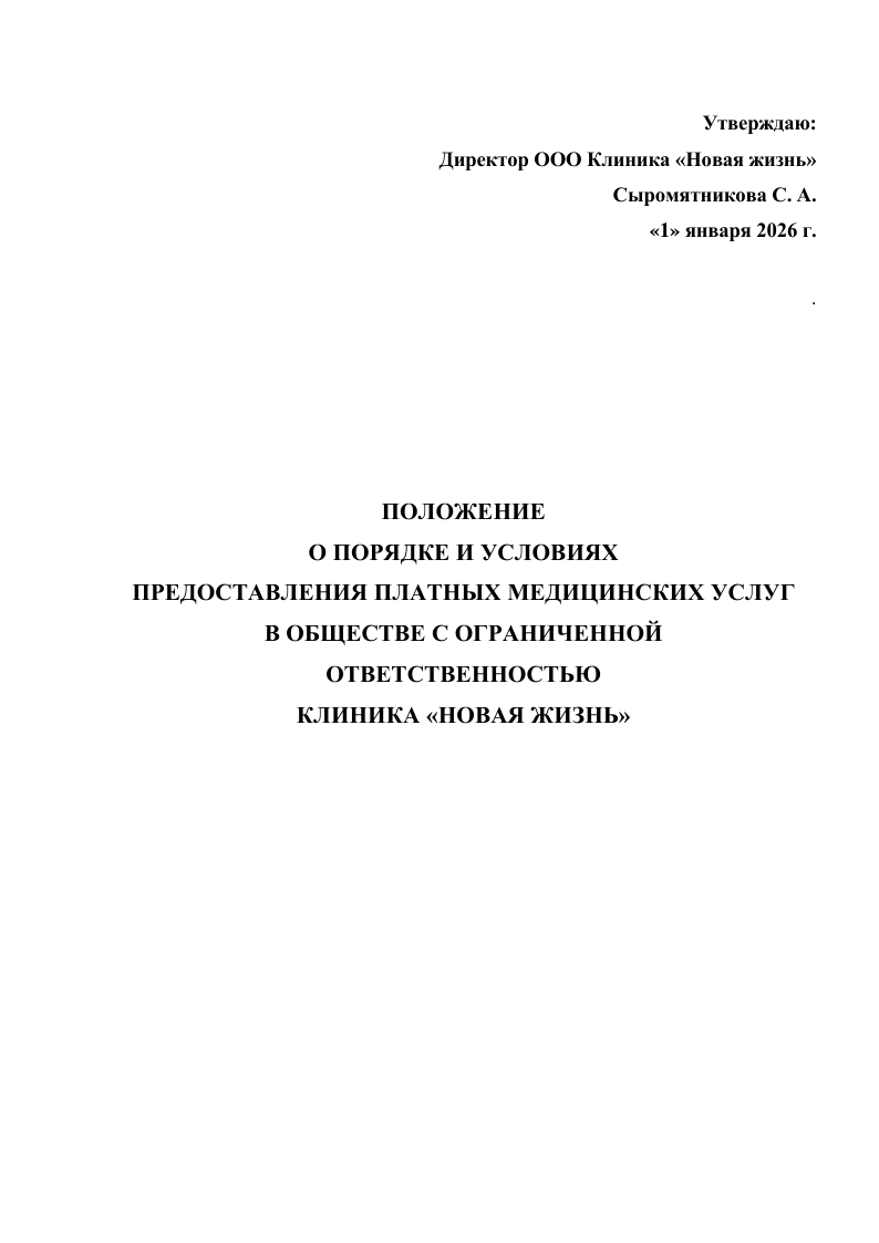 Положение о порядке и условиях предоставления платных медицинских услуг